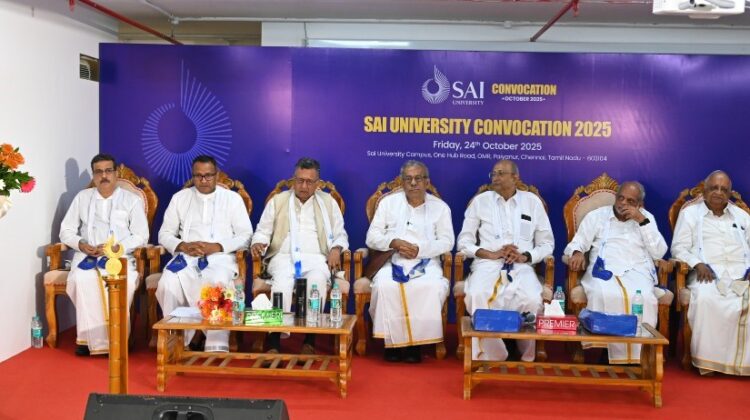 The Class of 2024 of Sai University, Chennai, received their degrees at the university’s Second Convocation Ceremony held on Friday, October 24, 2025, at the Sai University campus on OMR. The event marked a significant milestone for students graduating from the School of Arts and Sciences (BA/BSc Hons), the School of Computing and Data Science (BTech), and the School of Law (LLM).